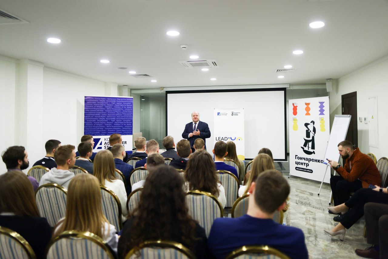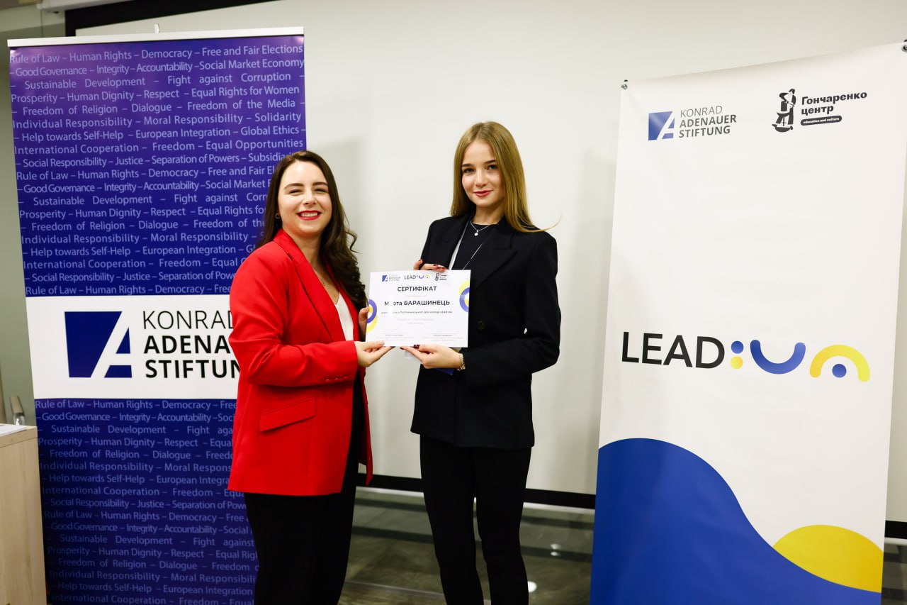 Політична школа для молоді LEAD:UA – спільний проєкт громадської організації «Ви.Мова» та Konrad-Adenauer-Stiftung (KAS), що відбувається щороку в Києві. Головна ідея проєкту – допомогти талановитим студентам, які мріють стати політиками, дипломатами та державними службовцями, зазирнути за лаштунки майбутньої професії та поспілкуватися з провідними представниками цієї сфери.